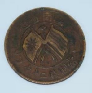 中华民国开国铜元是铜元收藏研究中数量很大,也是很重要的一个品类,甚至可以说是民国铜元的主体品种g_a_n_l_v_5_c_o_m。1911年辛亥革命胜利后,清帝退位,中华民国成立,中华民国开国铜元是由民国政府发行的一款纪念铜钱,正面"中华民国开国铜元"字样,十文,背面交叉龙旗。铜币当时面值以当十、当二十为主,当五十面值的相当少见,非常珍贵。
