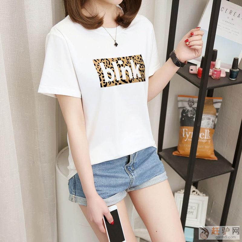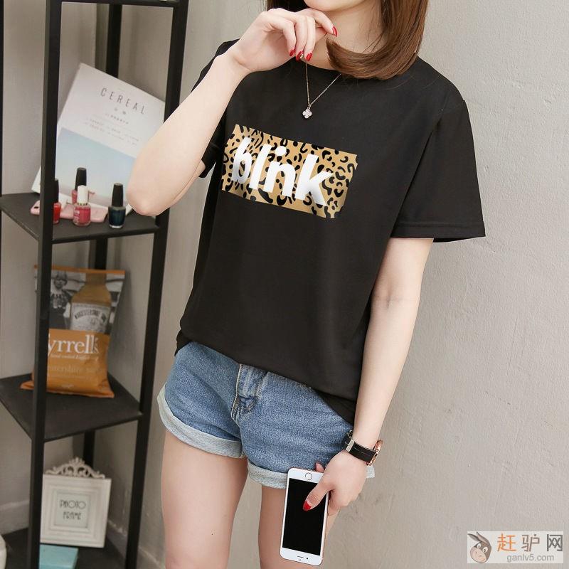 慵懒风短袖t恤女2019新款夏装宽松潮学生半袖豹纹字母上衣服潮原文www.ganlv5.com